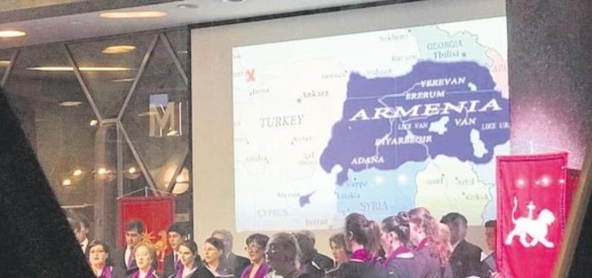 Almanya Ermeni Piskoposluğu, "Ağrı Dağı'nın Sessizliği-Ermeni Kültürü ve Tarihi" isimli 25. yıl etkinliği kapsamında Köln Katedrali önünde düzenlenen etkinlikte gösterilen haritada Türkiye'nin yarısı "Ermeni yurdu" olarak gösterilmekle kalmazken, KKTC de bu haritaya dahil edilmiş görünüyor.