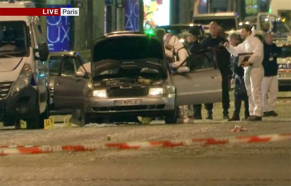 Champs Elysees Bulvarı'na arabasıyla gelen saldırgan, aracından inip trafik ışıklarındaki polislere otomatik silahla ateş açtı ve ardından koşmaya başladı. Kaçan saldırgan bölgedeki diğer polisler tarafından vurularak öldürüldü.