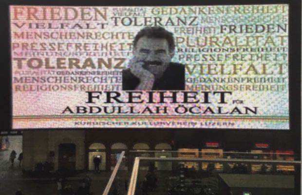 Bölücü terör örgütü elebaşı Öcalan'ın serbest bırakılmasına yönelik propaganda çalışmaları kapsamında 4 Ekim itibariyle İsviçre/Basel Merkez Tren İstasyonu'ndaki reklam panolarına bir hafta boyunca 5 dakikada bir olmak üzere 'Freiheit Für Abdullah Öcalan' (Öcalan'a özgürlük) yazan bir ilan gösterilmeye başlandı.