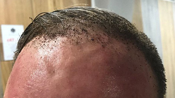 Sosyal medyadaki fotoğrafıyla dikkat çeken Peter Crowley, aniden duyduğu patlama sesinin ardından bir alev topunun saçlarını yaktığını anlattı.
