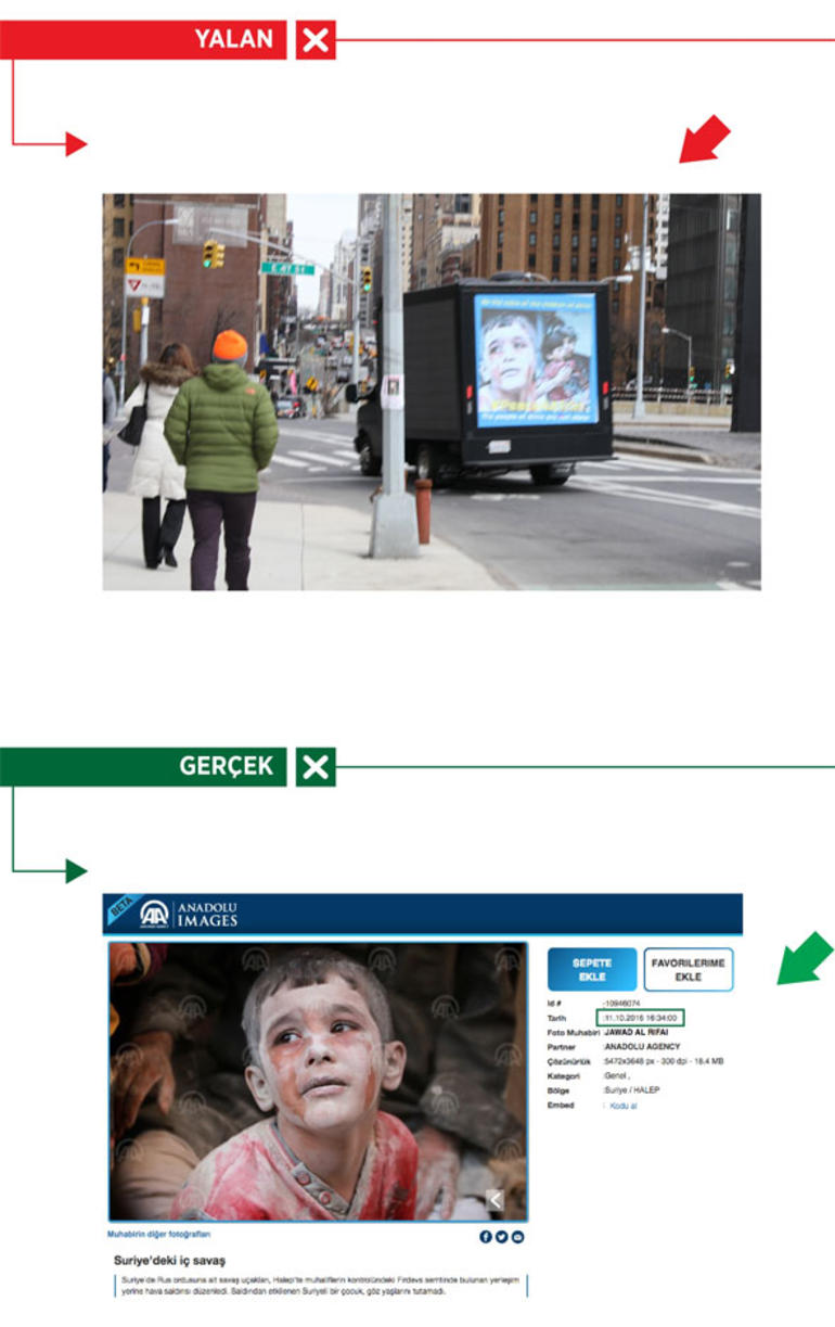 Bilbortta yer alan diğer yaralı çocuk görselinin de yine AA tarafından Halep'te Rus savaş uçaklarının saldırısından sonra çekildiği ve 11 Ekim 2016 tarihli olduğu belirlendi.