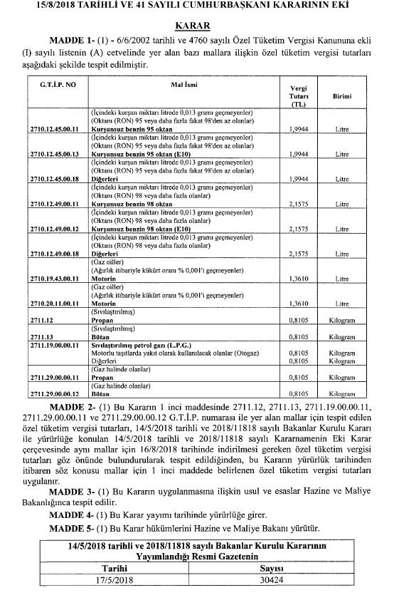 Akaryakıt fiyatlarına Özel Tüketim Vergisi düzenlemesi geldi. Düzenleme sonucu, akrayakıt pompa fiyatları en fazla yüzde 9 zamlanacak.