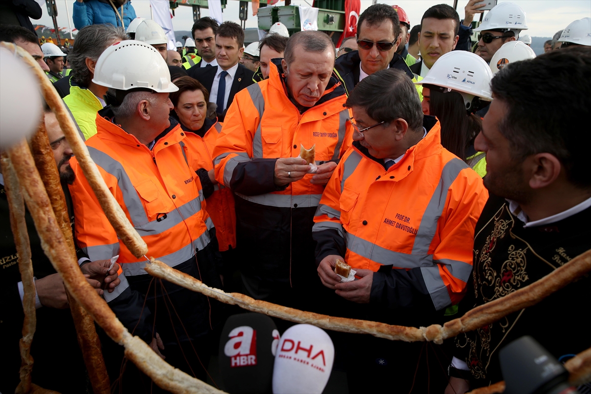 Yavuz Sultan Selim Köprüsü'nün yerleştirilen son tabliyesine Erdoğan, Davutoğlu ve Yıldırım kaynak yaptı.