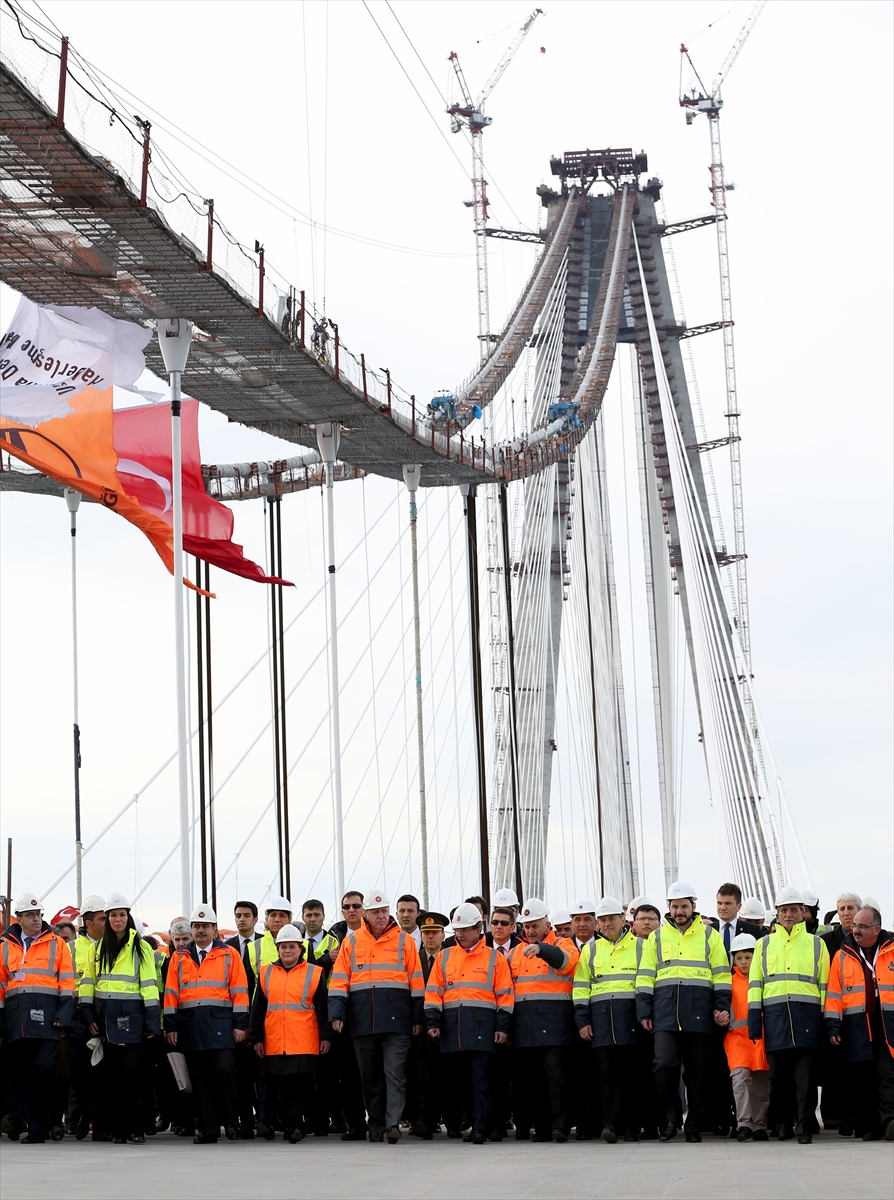 Yıldırım, birinci ve ikinci köprüyü yabancıların yaptığını, Türk müteahhitlerin taşeron olduğunu kaydederek, "Bu köprüde de ana yükleniciler Türk, taşeronlar yabancı. O zaman Japonlar, İngilizler, Koreliler yapardı, biz onlara hizmet ederdik. Şimdi Türk yükleniciler yapıyor, onlar da alt yüklenici olarak hizmet veriyor. Bu da Türkiye'nin değişimini, dönüşümünü, yol aldığı mesafeyi gösteriyor" değerlendirmesinde bulundu.