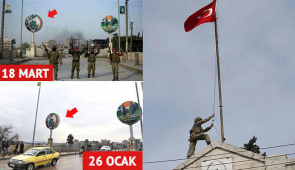 Uluslararası haber ajansı AFP, 26 Ocak tarihinde abonelerine Afrin merkezindeki bu noktanın fotoğrafını servis etmişti. Zeytin Dalı Harekatı'nın 58. gününde terör örgütü elebaşı Öcalan'ın fotoğrafının olduğu o cadde de TSK destekli ÖSO güçleri tarafından ele geçirildi.