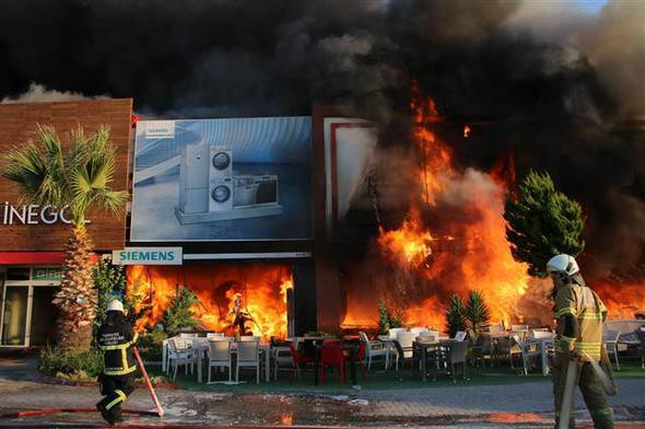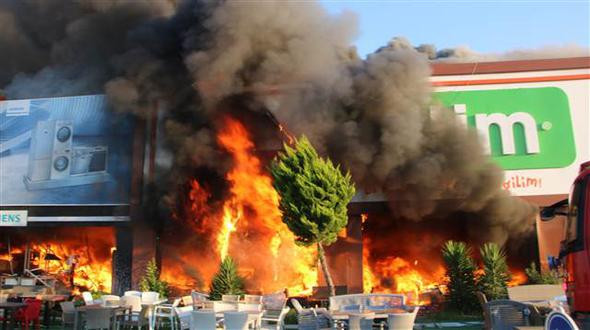 İzmir'de bir alışveriş merkezinde , belirlenemeyen nedenle yangın çıktı. İtfaiye ekiplerinin söndürme çalışması sürerken, dükkanlardan 3’ü yandı.