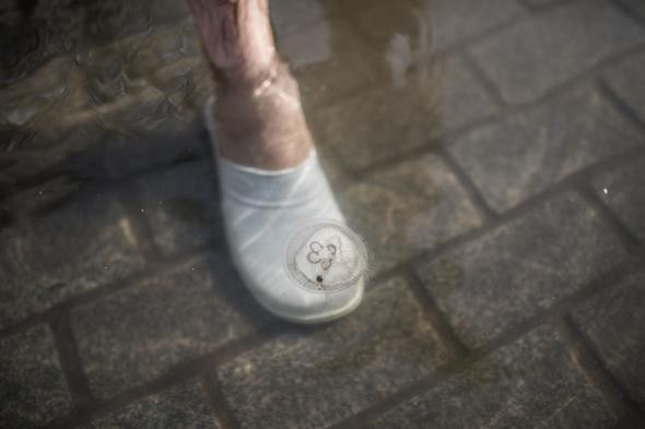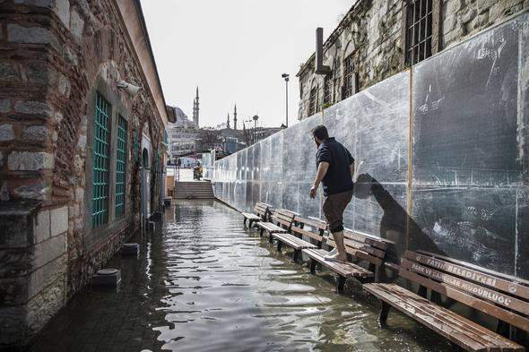 Fatih’te bulunan tarihi Ahi Çelebi Camii’nin bahçesi ve girişi 1 haftadır sular altında. Denizin hemen yanındaki caminin bahçesine giderlerden çok sayıda deniz anası da geldi.