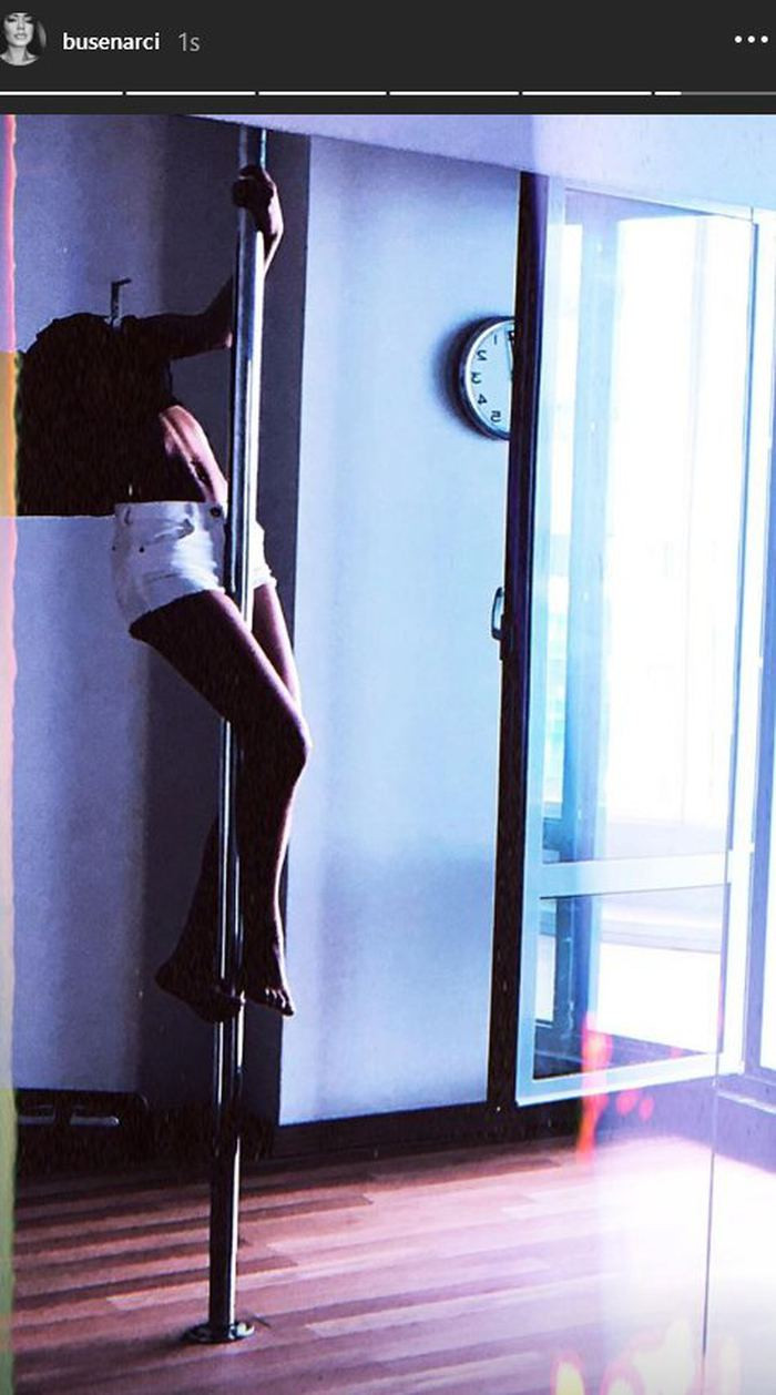 Birçok ünlü isim gibi direk dansına merak salan oyuncu Buse Narcı, direğin üzerindeyken çekilmiş bir fotoğrafını Instastory'den paylaştı.