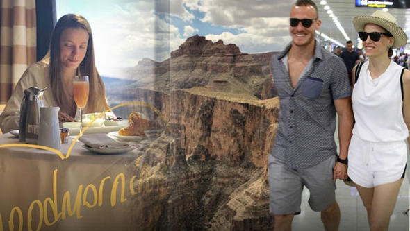Amerika'yı yeniden keşfeden ünlü çift araçlarıyla Arizona'ya gitti. Oyuncu çift, turistlerin uğrak yeri olan Büyük Kanyon'u ziyaret etti. Ulusal parkı yerden izlemekle kalmayan ikili, helikopter kiralayarak da eyaleti kuşbakışı seyre daldı.