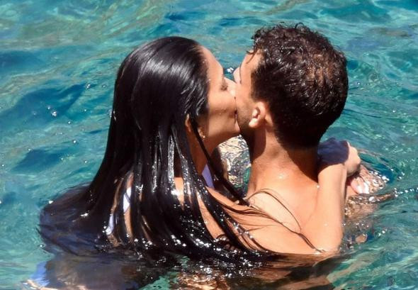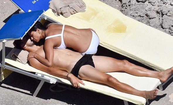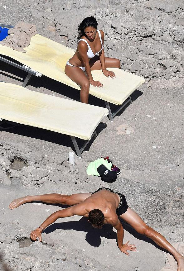 Bir süre jimnastik yapan bir süre de şakalaşan sevgililer daha sonra şezlonga uzanıp uzun süre güneşlendi. Ünlü çift, güneşlenme seansı sırasında bir konu hakkında da ciddi bir sohbete daldı.