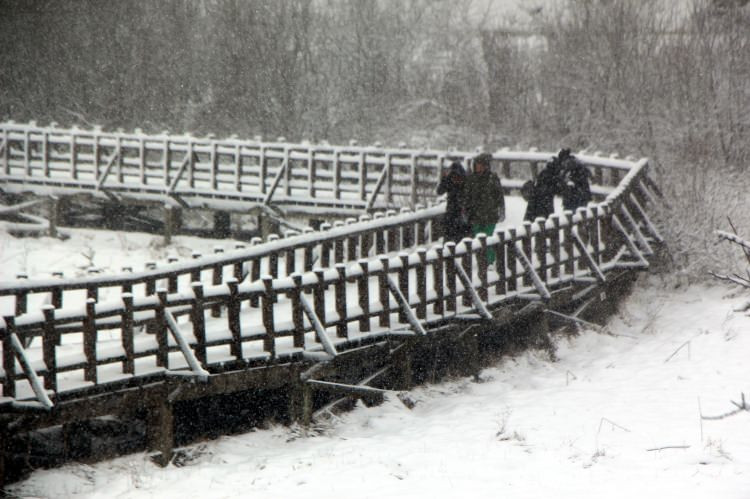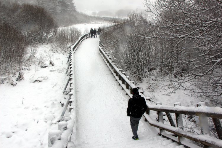 Kar kalınlığının 5 santimetreye ulaştığı tabiat parkına ilgi gösteren günübirlik ziyaretçiler, kar altında göl çevresinde yürüyüş yaptı, oluşan doğal güzelliğin fotoğrafını çekti.