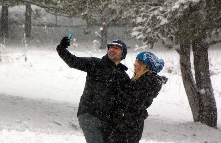 Bolu'nun yüksek kesimlerinde etkili olan kar yağışını fırsat bilen tatilciler, tabiat parklarında yoğunluk oluşturdu.