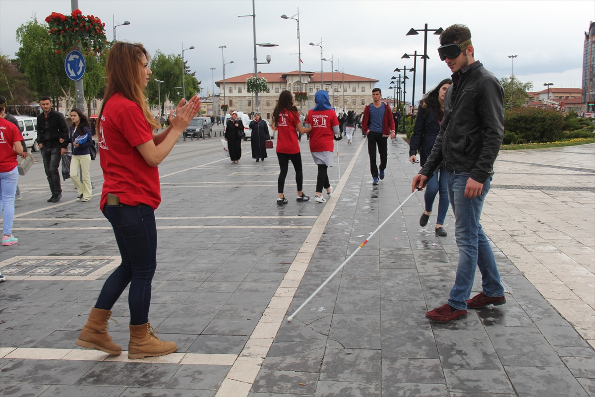 SİVAS (AA) - Cumhuriyet Üniversitesi (CÜ) Beden Eğitimi ve Spor Yüksekokulu ile Görme Engelliler Spor Kulübü, görme engellilerin yaşadıkları sıkıntılara dikkati çekmek için farkındalık etkinliği gerçekleştirdi.