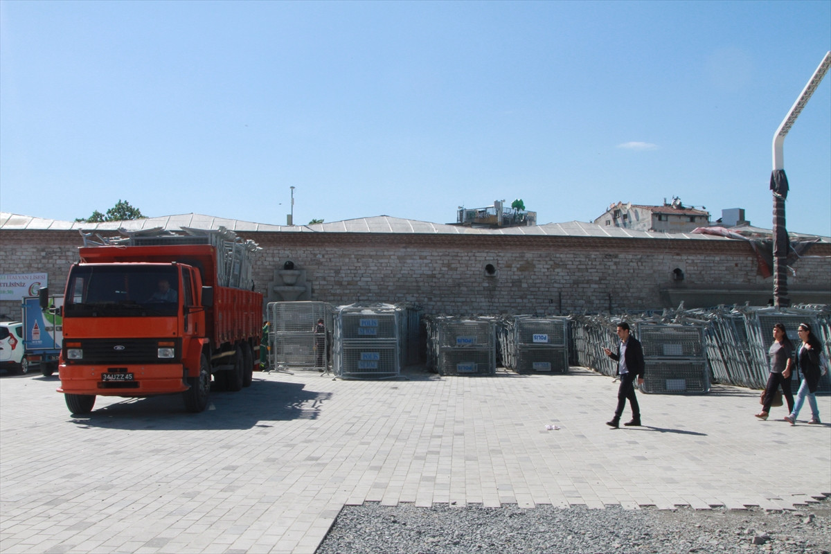 İstanbul Büyükşehir Belediyesi ekiplerince kamyonlarla getirilen bariyerler, işçiler tarafından meydanın çeşitli yerlerine konuldu. 1 Mayıs İşçi Bayramı'na hazırlık yapan ekipler, MOBESE kameralarına da bakım yaptı.