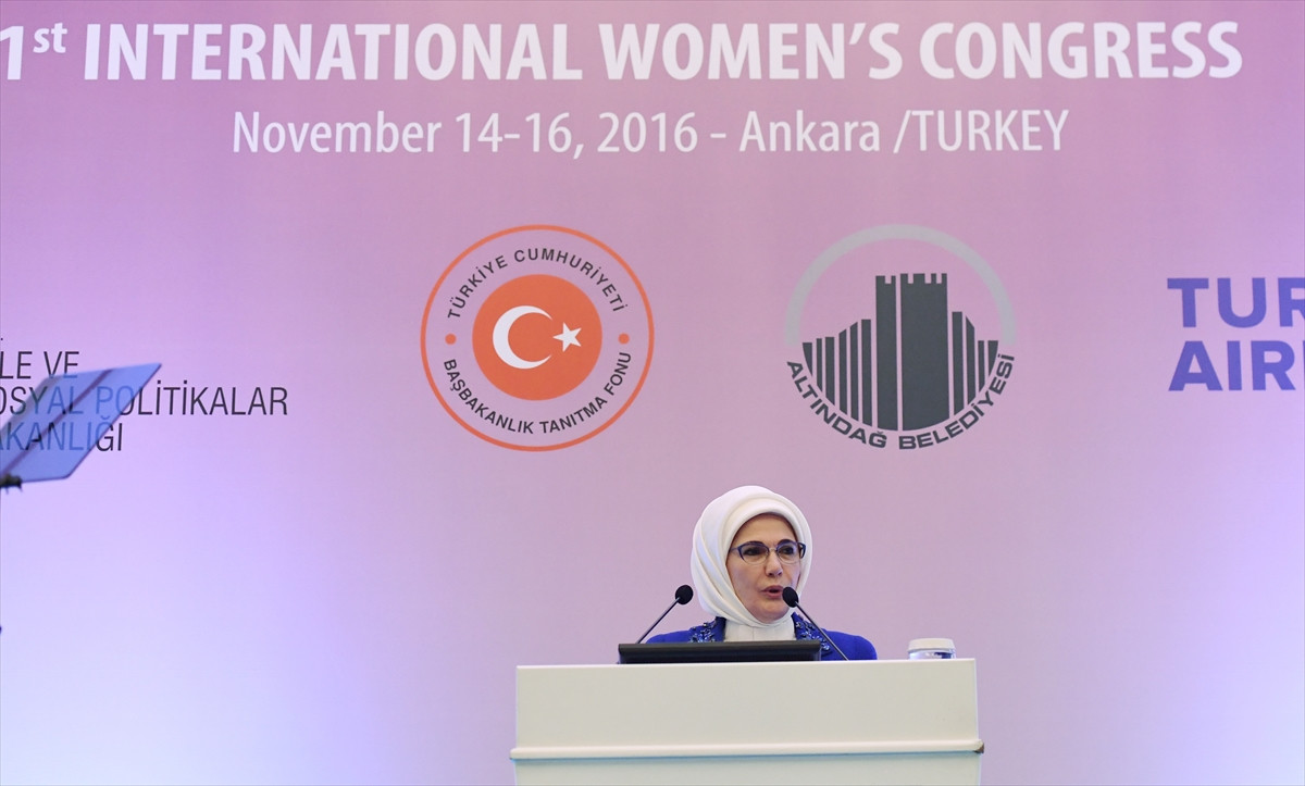 Emine Erdoğan, Ankara Yıldırım Beyazıt Üniversitesi ile Florida Üniversitesi iş birliğinde bir otelde düzenlenen "1. Uluslararası Kadın Kongresi"nin açılışında yaptığı konuşmada, tarih boyunca kadını ezen ekonomik ve sosyal şartların bugün daha da ağırlaşmış durumda bulunduğunu belirtti.