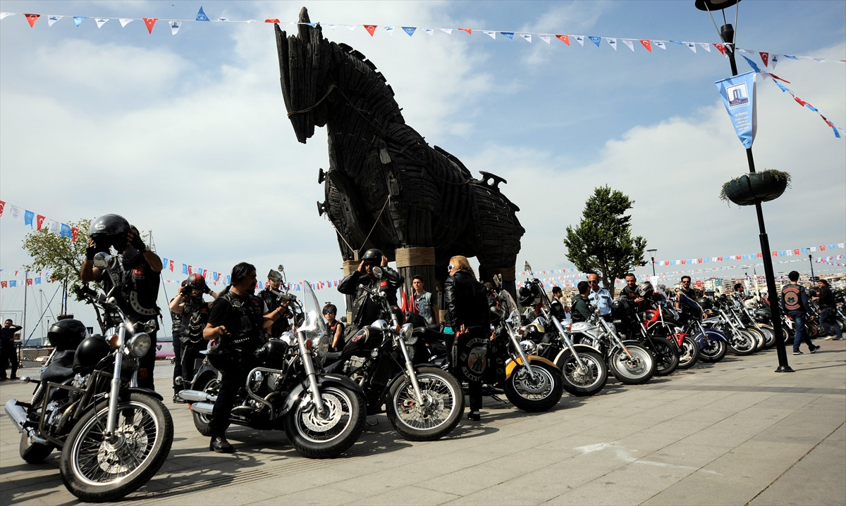 ÇANAKKALE (AA) - İstanbul'da faaliyet gösteren bazı motosiklet derneklerinin üyeleri ile muharip gaziler, Çanakkale Savaşlarının 101. yılı etkinlikleri kapsamında "101. Yılda 101 Motosiklet 101 Gazi Sürüşü" projesi için Çanakkale'de buluştu. Çanakkale Savaşlarının geçtiği Gelibolu Yarımadası'ndaki tarihi alanları, şehitlikleri ve anıtları ziyaret eden motosiklet tutkunları, Çanakkale Valiliği karşısındaki Morabbin Park'ta Vali Vekili Saim Eskioğlu tarafından karşılandı.