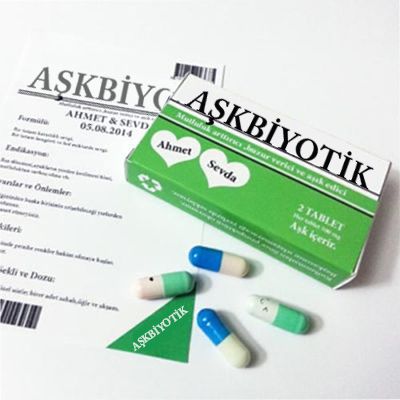 Orijinal bir ilaç kutusu şeklinde tasarlanmış olan kişiye özel aşkbiyotik ile sevgilinize güzel bir sürpriz yapabilirsiniz. Size özel hazırlanan içerikle beraber sevgilinize unutulmaz bir hediye verebilirsiniz.