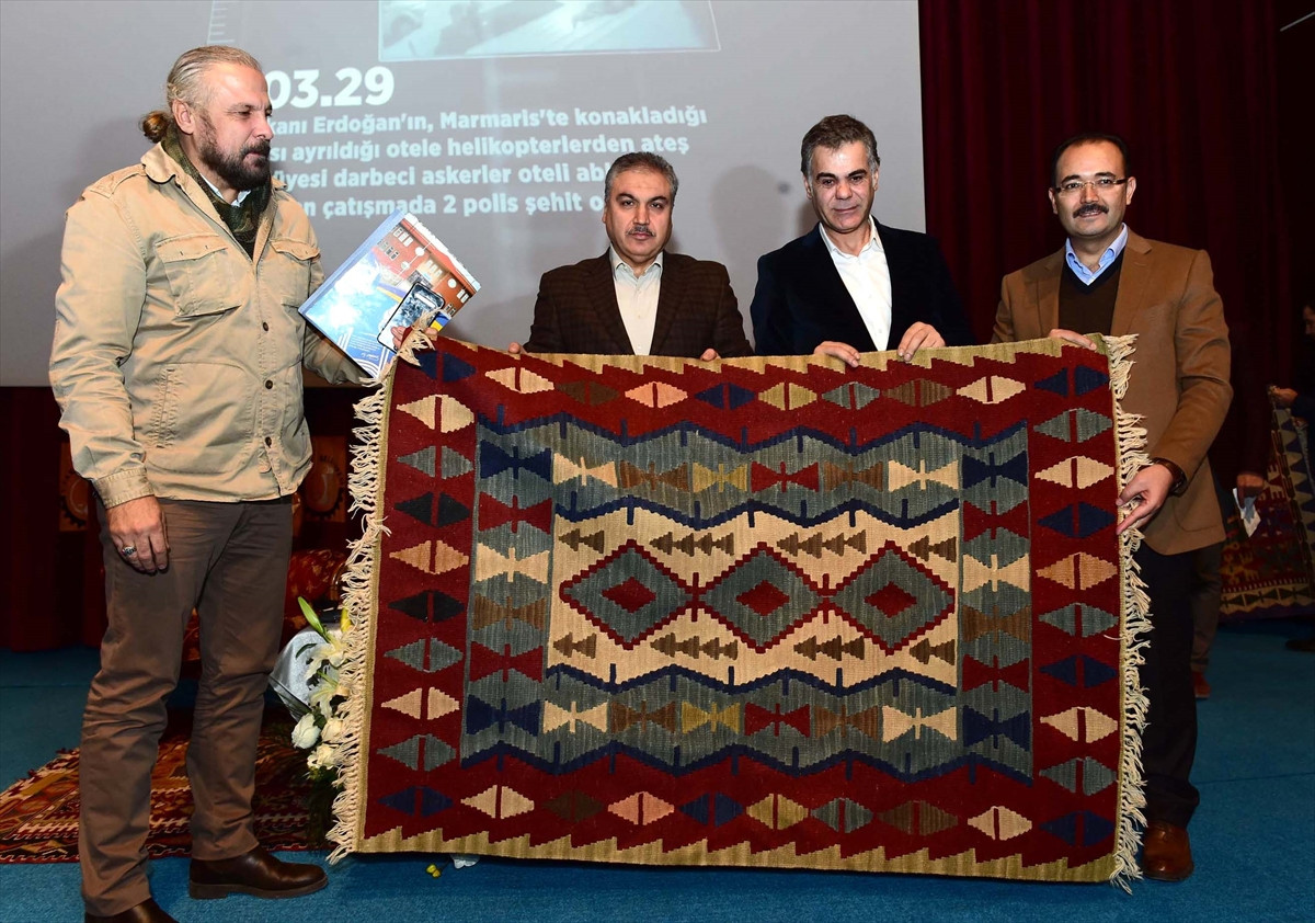 Konferans sonunda Vali Okur, 1977-1978 döneminde Uşak'ta Gazi Mustafa Kemal İlkokulundan mezun olan Mete Yarar'a mezuniyet belgesini, Belediye Başkanı Nurullah Cahan da Uşak kilimi hediye etti.