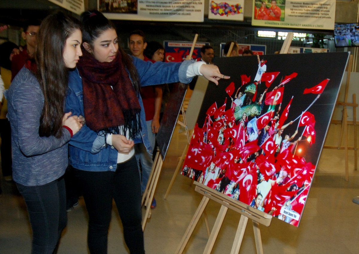 Anadolu Ajansı (AA) foto muhabirlerinin objektifinden, FETÖ'nün 15 Temmuz darbe girişimi sırasında yaşananları yansıtan "15 Temmuz Milli Direniş Sergisi" adlı fotoğraf sergisi, Güngören Erdem Beyazıt Anadolu Lisesinde açıldı. Serginin açılışına AA İstanbul Haberleri Editörü Hüseyin Altınalan, Güngören İlçe Milli Eğitim şube müdürleri Tahir Uygur ve Necdet Erol ile Güngören Erdem Beyazıt Anadolu Lisesi Müdürü Remzi İlhan, Beyaz İnşaat Yönetim Kurulu Başkanı Ali Beyaz, Bahçelievler Belediyesi Spor Kulübü Başkanı Hacı Yusuf Yıldırım, ilçedeki liselerin müdürleri, öğretmenler ve öğrenciler katıldı. Altınalan, serginin açılışında yaptığı konuşmada, medyanın, toplumları bilgilendirme ve algıların oluşması açısından çok önemli bir kaynak olduğunu söyledi. Günümüzde toplumların, bilgi bombardımanı altında hangi haberin doğru, hangi haberin yanlış olduğunu ayırt edemediğini ifade eden Altınalan, şöyle konuştu: "Toplumları doğru bilgilendiren kaynaklar büyük önem arz etmektedir. AA'nın da bu işlevi en iyi şekilde gördüğünü düşünüyoruz. Muhabir arkadaşlarımız, ölümü göze alarak, büyük zorluklar altında görev yapmaktadır. Böylece hem içeriden hem de dışarıdan oluşturulan o yanlış algıyı, psikolojik savaşı ve harekatı sona erdirmekte, oluşturulan yanlış algıyı da ters yüz etmektedir. Bazı arkadaşlarımız savaş bölgelerinde can vermiştir. 15 Temmuz'da mermiler üzerlerine yağmıştır ama ölümü göze alarak görev yapmışlardır." Lise Müdürü İlhan da AA foto muhabirlerinin 15 Temmuz darbe girişimi sırasında çektikleri fotoğraflardan oluşan serginin 10 gün önce ziyarete açıldığını, bugün ise resmi açılışının gerçekleştirildiğini söyledi. Lisede öğrenim gören 816 öğrencinin sergiyi görme imkanı bulduğunu belirten İlhan, diğer okullardaki öğrencileri de 15 gün daha açık kalacak olan sergiyi gezmeye davet etti. Konuşmaların ardından Altınalan, İlhan ve konuklar, kurdele keserek serginin açılışını gerçekleştirdi. Davetliler daha sonra, lisenin fuaye alanındaki fotoğraf sergisini gezdi.