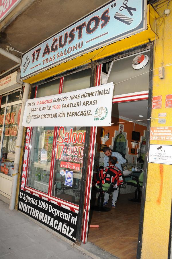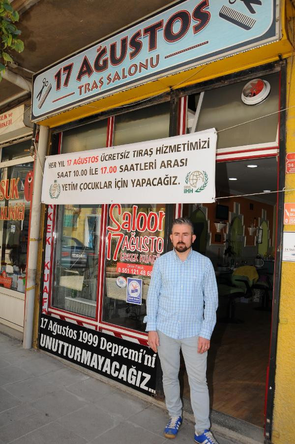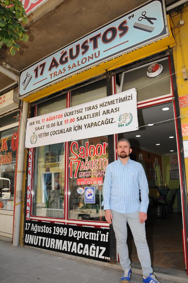 İHH İnsani Yardım Vakfı Eskişehir Temsilciliği iş birliğiyle son 2 yıldır 17 Ağustos'ta kimsesiz çocukları ücretsiz tıraş ettiklerini belirten Ömer Faruk Akceylan, "Depreme kadar Gölcük'ün İhsaniye beldesindeydik. 17 Ağustos depremi yaşadık. Deprem sonrası buraya geldik, '17 Ağustos Erkek Kuaförü' adlı iş yerimizi açtık. 17 Ağustos depremini unutturmamak adına tıraşlarımızı ücretsiz yapmaya karar verdik ve 19 senedir de bunu sürdürüyoruz. 17 senemizden sonra da yetim çocuklarımızı tıraş etmek için hizmet sunuyoruz. Depremi unutmamak lazım.