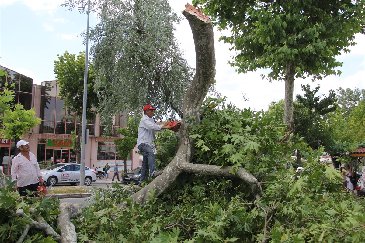 Bu arada, Edirne Belediyesi Park ve Bahçeler Müdürlüğü ekipleri ağacın dalını elektrikli testereyle parçalayarak bulunduğu yerden kaldırdı.
