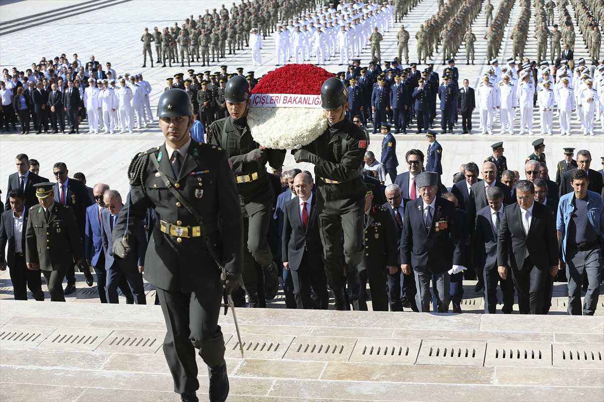 Soylu, Emniyet Genel Müdürü Selami Altınok, Ankara Valisi Mehmet Kılıçlar ve diğer ilgililerle birlikte Aslanlı Yol'dan yürüyerek Atatürk'ün mozolesine çelenk bıraktı.