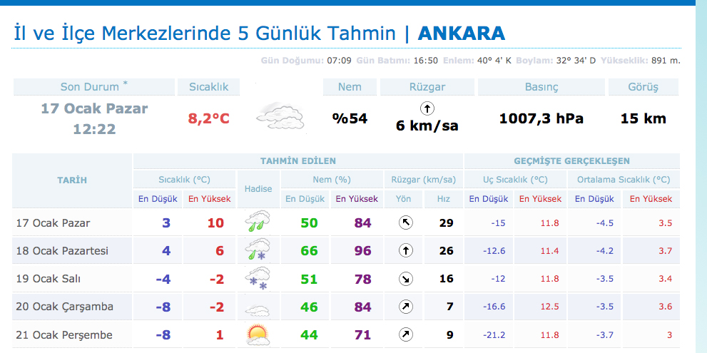Ülkemizin batı kesimlerinde devam eden sağanak yağmurun akşam saatlerinden sonra etkisini artırarak kar yağışına dönmesi ve yarın (18.01.2016) Marmara'nın güney ve doğusu (İstanbul, Kocaeli, Sakarya, Yalova, Bilecik, Bursa, Balıkesir ve Çanakkale ), İç Anadolu'nun kuzeybatısı (Ankara, Eskişehir ve Çankırı), Kütahya, Afyonkarahisar, Zonguldak, Bartın, Düzce, Bolu, Karabük ve Kastamonu çevrelerinde kuvvetli (5-20 cm), yer yer yoğun kar yağışı (20 cm ve üzeri) şeklinde olması beklendiğinden yaşanabilecek olumsuzluklara (ulaşımda aksamalar vb.) karşı dikkatli ve tedbirli olunması gerekmektedir.