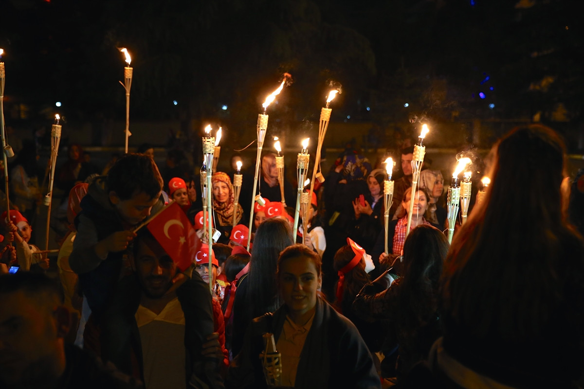 Burada, öğrenci ve veliler yaktıkları meşalelerle orkestranın çaldığı şarkılara eşlik etti.