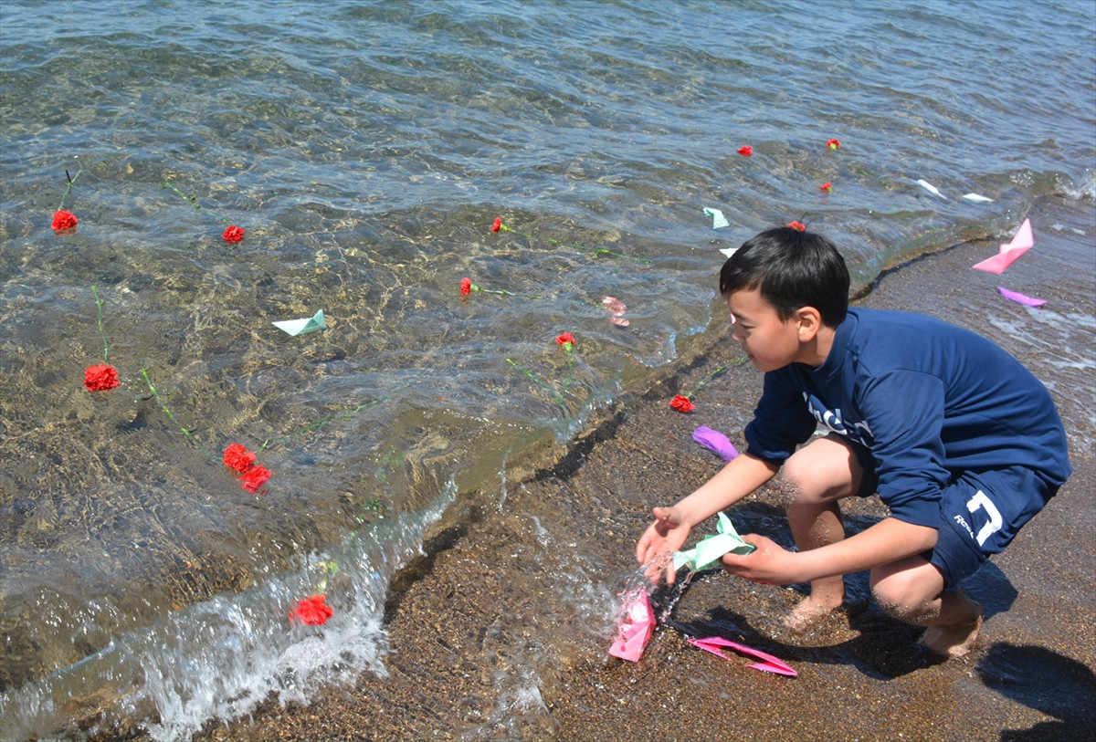 İZMİR (AA) - İzmir'in Dikili ilçesinde 23 Nisan Ulusal Egemenlik ve Çocuk Bayramı etkinliği kapsamında, Ege Denizi'nde yaşamını yitiren sığınmacı çocukların anısına suya karanfil bırakıldı.
