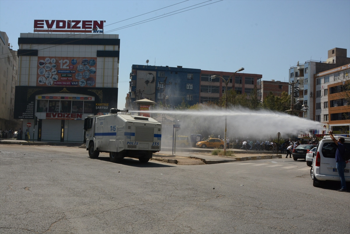 Güvenlik güçlerinin ikazlarına rağmen dağılmayan gruptan bazı kişiler, güvenlik güçlerine taş attı. Bunun üzerine biber gazı ve tazyikli suyla müdahale edilen gruptakiler ara sokaklara kaçtı.