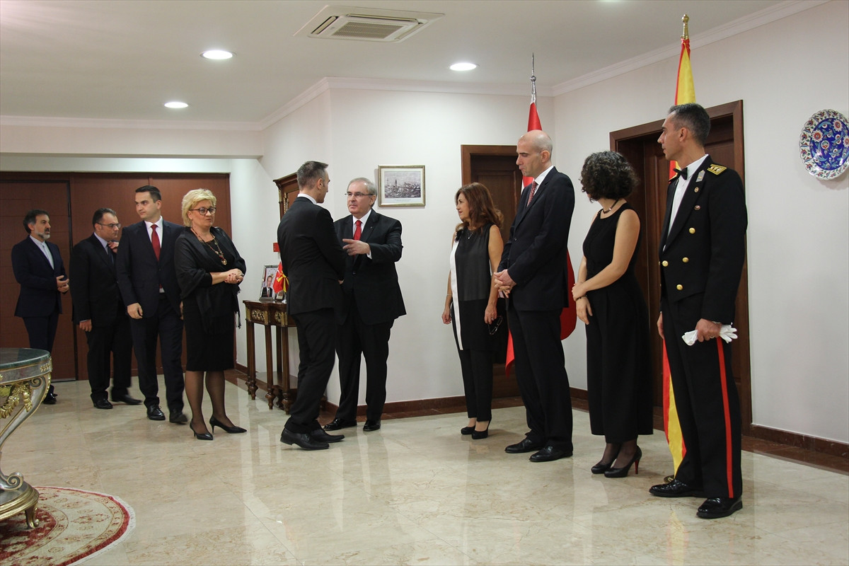 Türkiye'nin Üsküp Büyükelçisi Ömür Şölendil ev sahipliğinde düzenlenen resepsiyona, Makedonya Cumhurbaşkanı Gyorge İvanov, Türk asıllı Devlet Bakanı Beycan İlyas ve Adalet Bakanı Valdet Caferi'nin yanı sıra çok sayıda devlet ve kurum temsilcisi katıldı.