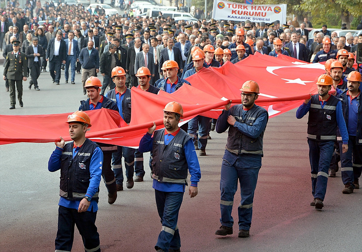 Cumhuriyet'in 93. yıl dönümü kutlamaları kapsamında, Kent Meydanı'ndan başlayan korteje Vali Mehmet Aktaş, Garnizon Komutanı Jandarma Albay Cihan Ulukaya, Cumhuriyet Başsavcısı Ahmet Fatih Ağca, Karabük Belediye Başkan Yardımcısı Fatma Danışman, KARDEMİR işçileri, siyasi partilerin temsilcileri, sivil toplum örgütleri üyeleri, öğrenciler ve çok sayıda vatandaş katıldı. Yürüyüş, Atatürk Anıt'ında sona erdi.