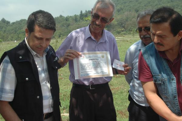 Tören sonrası çekilen kura ile 55 ceviz fidanının bulunduğu parseller, 12 aileye dağıtıldı.