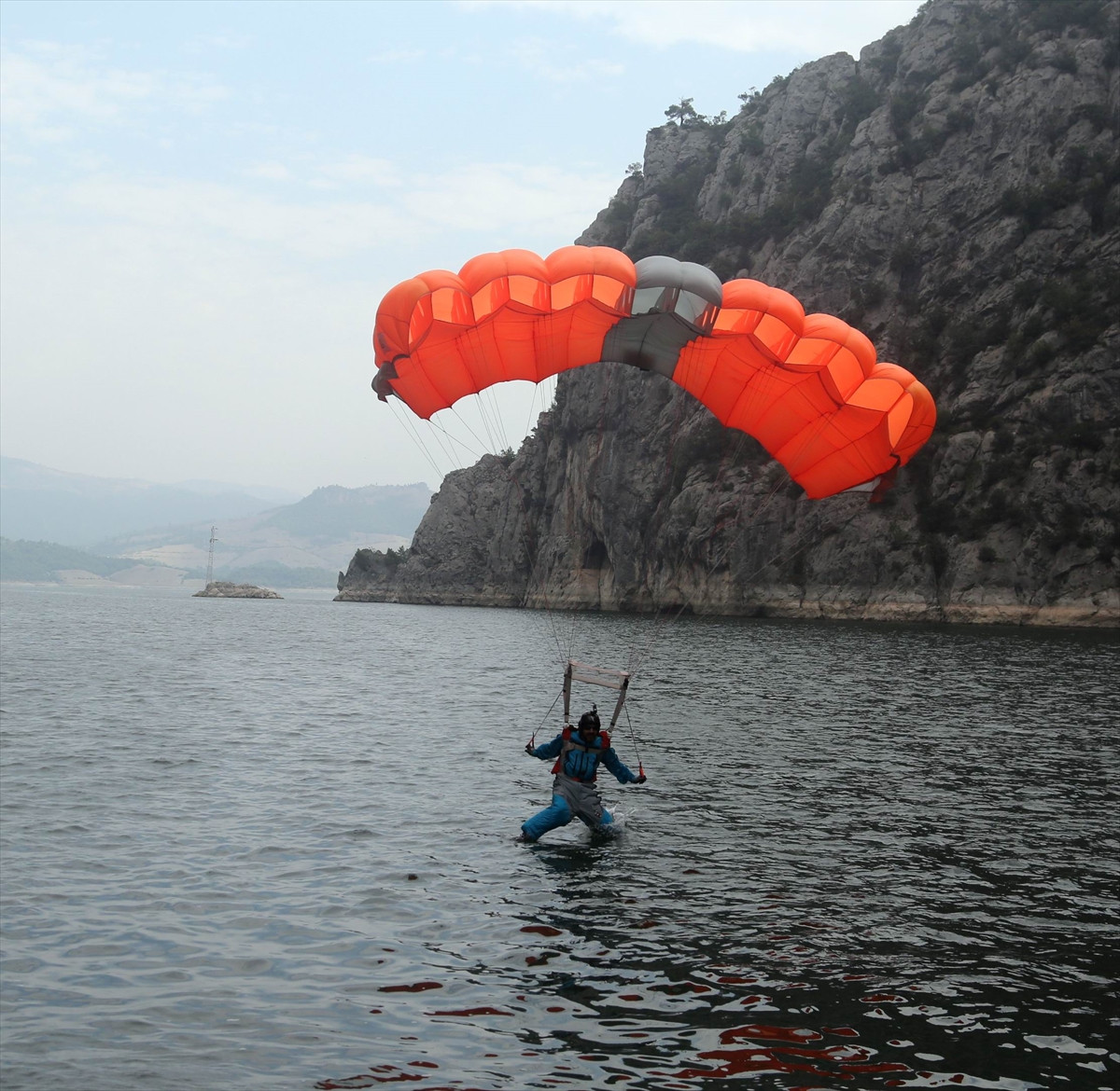 SAMSUN (AA) - Base jumping (binalar, kuleler, köprüler üzerinden paraşütle atlama) sporcusu Cengiz Koçak, Samsun'un Vezirköprü ilçesindeki Şahin Kanyonu'nda 324 metreden serbest atlayış yaptı.