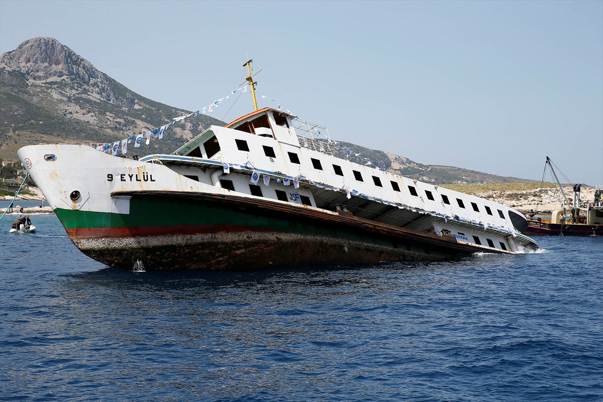 İZMİR (AA) - İzmir'de 1970'li yıllardan bu yana iki yaka arasında yolcu taşımacılığı yapan 9 Eylül vapuru, Karaburun ilçesinde su altı canlılığın artırılması ve dalış turizminde kullanılmak üzere törenle batırıldı.