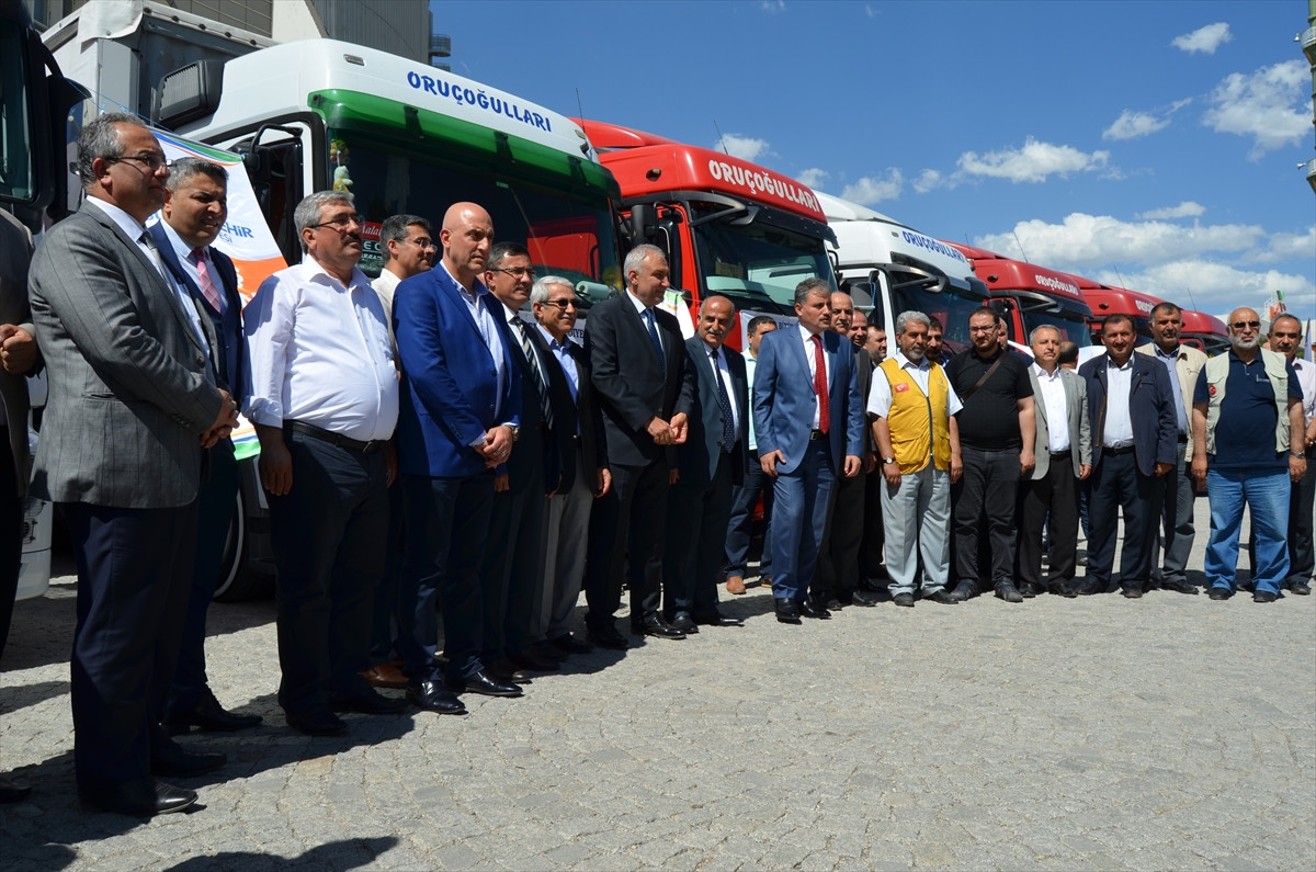 İl Müftüsü Ümit Çimen'in duasının ardından, 8 tırdan oluşan yardım konvoyu yola çıktı.