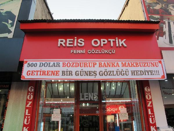 Ağrı'da optik dükkanı olan Mehmet Cemil Baysal, yükselen döviz kuruna tepki olarak başlattığı kampanya ile 500 dolar bozdurana 250 TL değerinde güneş gözlüğü hediye ediyor.