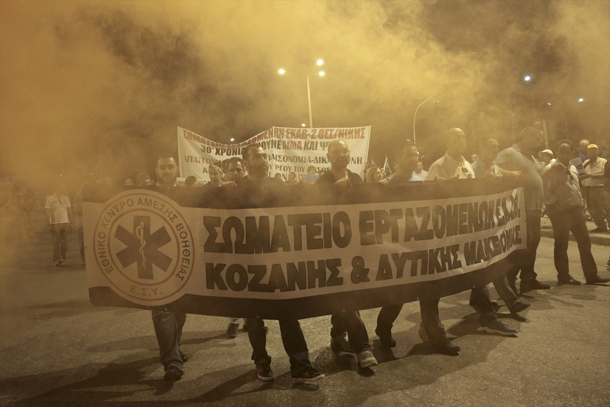 Yunanistan İşçi Sendikaları Konfederasyonu (GSEE), Yunanistan Kamu Çalışanları Federasyonu (ADEDY), Mücadeleci İşçi Cephesi (PAME) ve radikal grupların çağrısıyla bir araya gelen binlerce kişi kemer sıkma politikaları ve hükümet karşıtı sloganlar attı.