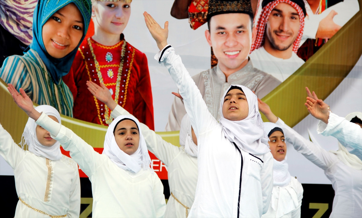Konuşmaların ardından, Yemenli öğrenciler, kılıç kalkan gösterisi yaptı, Suriyeli öğrenciler ise ülkelerinin marşlarını seslendirdi.