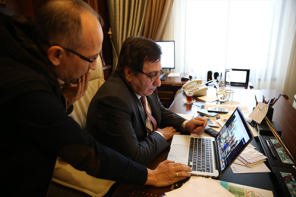 AA tarafından düzenlenen "Yılın Fotoğrafları" oylaması hakkında AA Bursa Bölge Müdürü Zafer Akpınar'dan bilgi alan Küçük, fotoğrafları inceledi, nerede ve kim tarafından çekildiğini öğrendi.