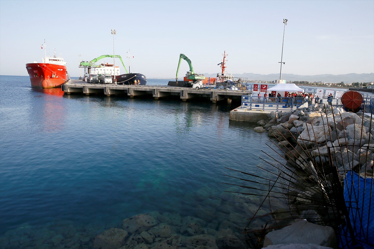 Sahil Güvenlik Komutanlığına bağlı bot ve helikopterin eşlik ettiği gemiler, Dikili Limanına yanaştı.