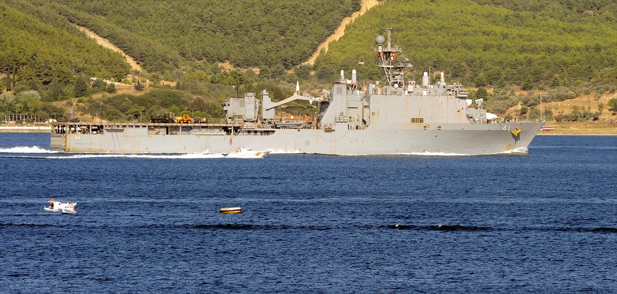Ege Denizi yönünden Marmara Denizi'ne doğru ilerleyen "41" borda numaralı "USS Whidbey Island" adlı geminin geçişine, Sahil Güvenlik Çanakkale Grup Komutanlığına bağlı ekipler botla eşlik etti.