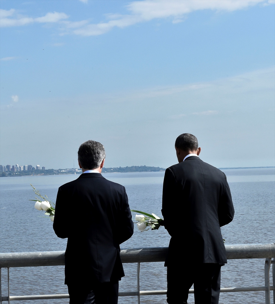 Obama, tören öncesi parkın yanındaki La Plata Nehri kıyısına giderek, askeri dikta döneminde uyuşturulduktan sonra uçaklardan nehre atılan muhaliflere saygısını sunmak için nehre çiçek bıraktı.