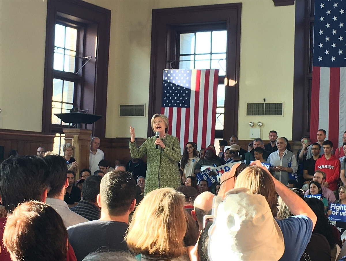 Demokrat Parti'nin önde bulunan adayı Clinton, pazar günü New York'un, Mt. Vernon ve Long Island bölgesi ile Staten Island ilçesinde halka hitap etti. Mt. Vernon'daki konuşmada silah şiddetine odaklanan Clinton'un mitingine 2011'de Arizona'da silahlı şiddet sonucu ağır yaralanan ve uzun süre yaşam mücadelesi veren Arizona Kongre Üyesi Gabby Giffords ve astronot eşi Mark Kelly de katıldı.