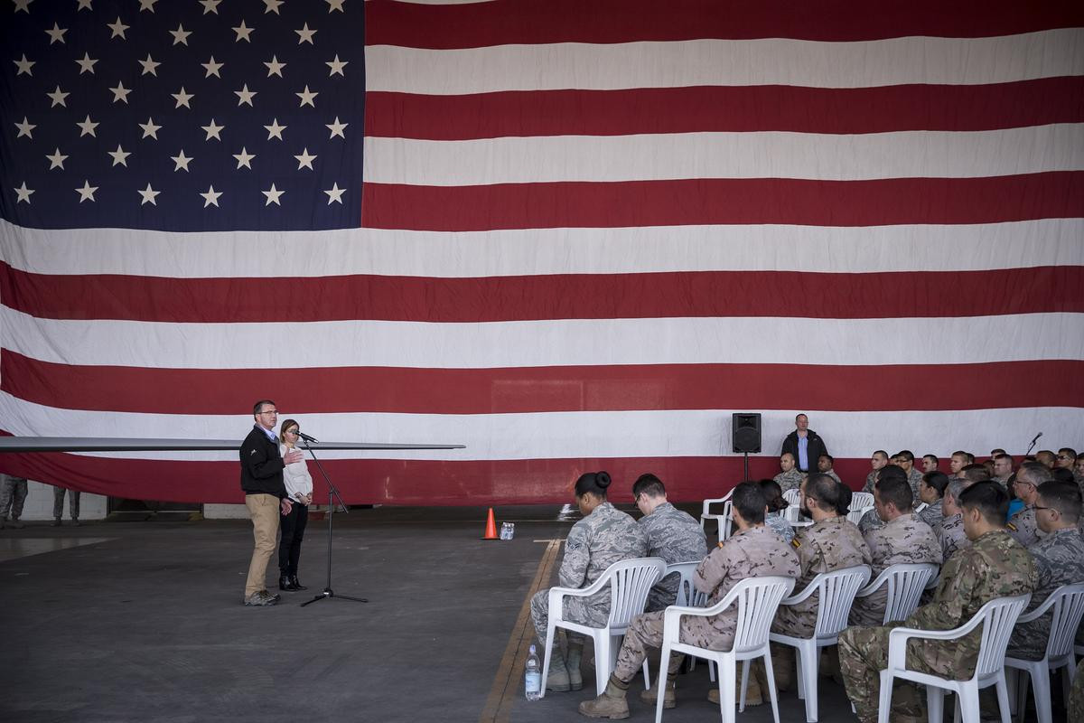 Gösterdikleri çaba ve fedakarlık için askerlere teşekkür eden Carter, DAEŞ'in yenilmesi konusunda çok önemli bir görevi yaptıklarını söyledi. Carter, ABD olarak DAEŞ'le mücadelede daha fazlasını yapmaya baktıklarını, diğer ülkelerden de bunu beklediklerini söyledi.