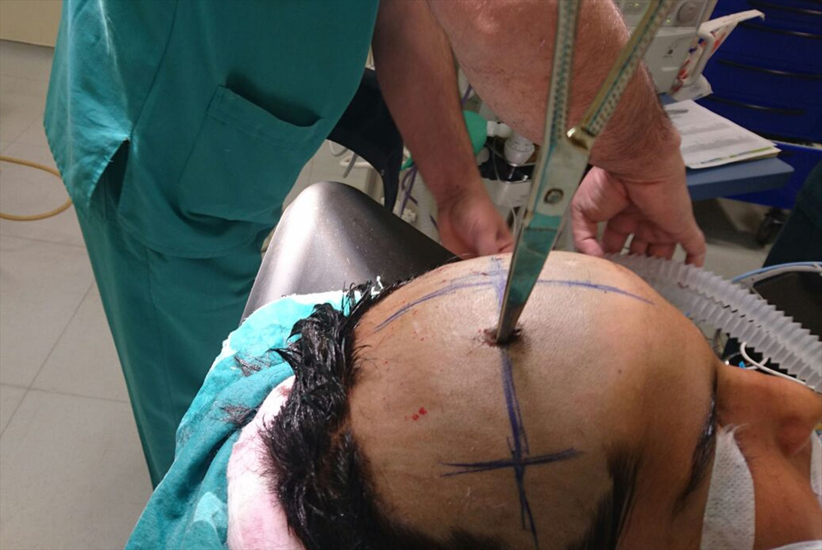 Tatvan Devlet Hastanesi Beyin ve Sinir Cerrahi Uzmanı Op. Dr. Cengiz Atış'ın gerçekleştirdiği ve yaklaşık 1.5 saat süren operasyonla Manay'ın kafasına saplanan makas çıkarıldı.