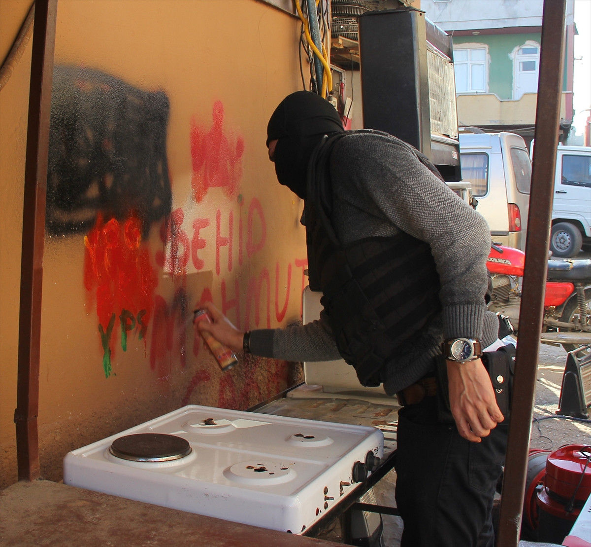 Kahvehanede sigara içen bir kişi hakkında idari, iş yeri sahibi hakkında ise adli işlem yapıldı. İş yerinin dış duvarına yazılmış terör örgütü isimleri, polis ekiplerince sprey boyayla kapatıldı.
