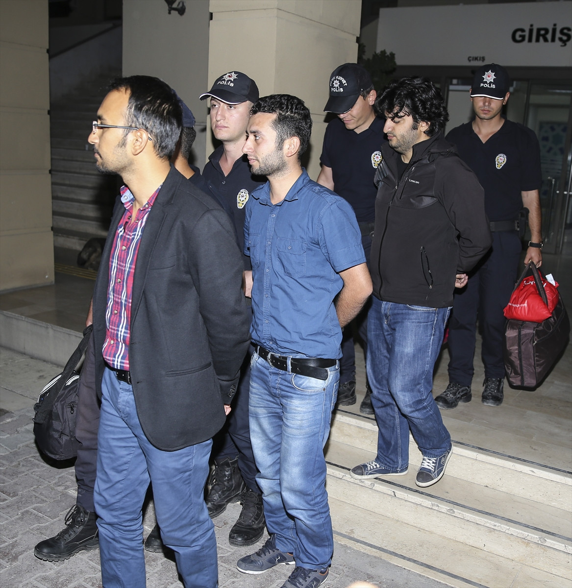 Adana Adli Tıp Birimi'ndeki sağlık kontrolünün ardından adliyeye sevk edilen zanlılardan 8'i savcılıkça serbest bırakıldı, 14 polis ve 4 öğretmen çıkarıldıkları mahkemece tutuklandı.