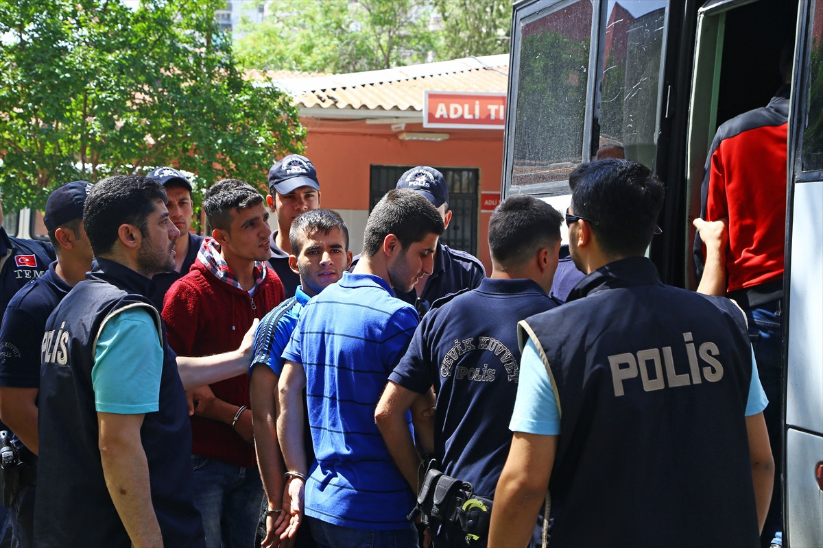 Adana Adli Tıp Biriminde sağlık kontrolünden geçirilen şüpheliler, daha sonra adliyeye sevk edildi.