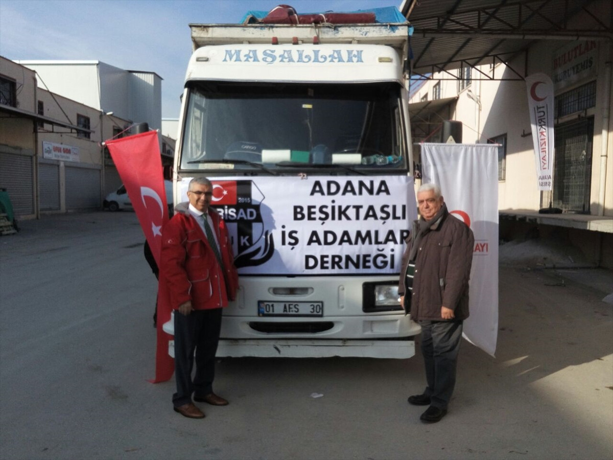 ADANA (AA) - Adana Beşiktaşlı İş Adamları Derneği (ABİSAD) tarafından hazırlanan insani yardım malzemelerini Haleplilere ulaştıracak tır yola çıktı.